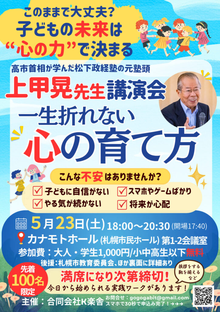 ぜひ、上甲晃先生講演会にお越しください。